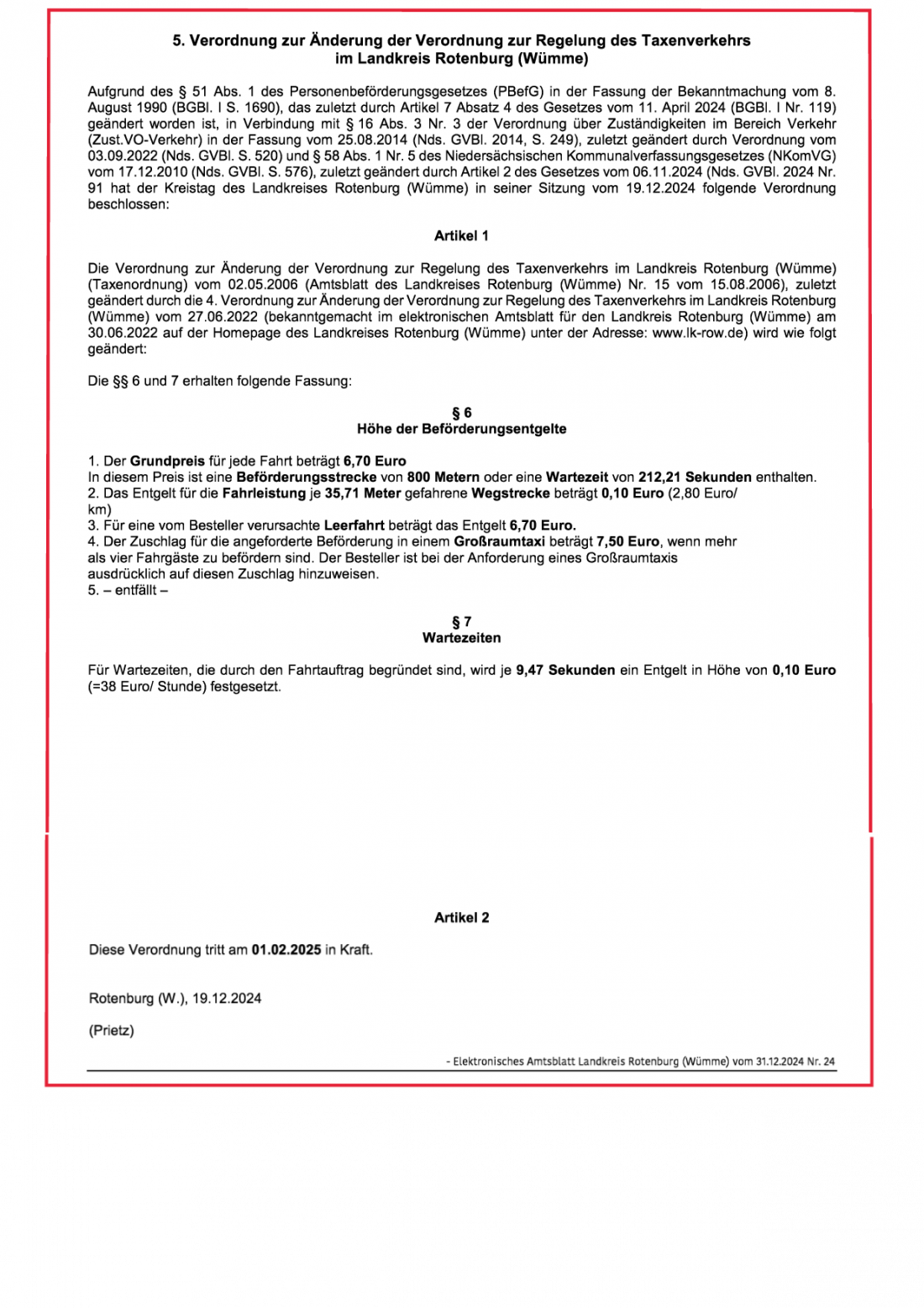 TAXI 2000 PAPE | VERORDNUNGEN
